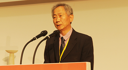 | ▲한국조직신학회 회장 배경식 교수(한일장신대)가 대회사에서 한·중·일 신학자들에게 세월호 참사 희생자를 위해 기도하는 시간을 갖자고 제안하고 있다. ⓒ사진=김진한 기자 |
