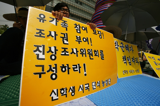 이들은 △ 희생자‧실종자 가족의 요구 무조건 수용 △ 현 내각 총사퇴 △ 참사책임에 대한 대통령의 주도적 역할 등 세 가지 요구사항이 받아들여질 때까지 무기한 농성을 이어나갈 방침이다.