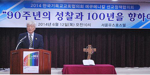 12일 오전 서울유스호스텔에서 2014에큐메니칼선교정책협의회를 개최했다. 김영주 NCCK 총무가 인사말을 전하고 있다.