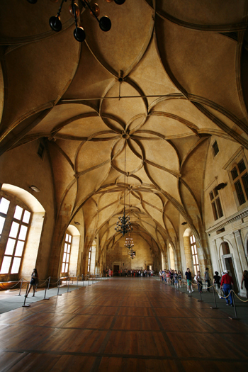 | ▲프라하 구왕궁의 블라디슬라프 홀. 높이 13m, 폭 16m, 길이 62m로 유럽 최대 규모를 자랑한다. 과거엔 이곳에서 마상 경기도 벌어졌다고 한다. |