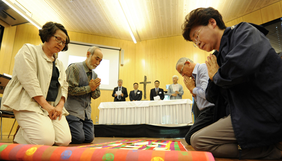 | ▲제네바 회담 참석자들이 한반도의 평화를 위한 기도를 올리고 있다 ⓒ사진제공=WCC |