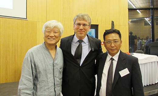 | ▲왼쪽부터 김영주 NCCK 총무, 울라프 픽쉐 트베이트 WCC 총무, 조선그리스도교연맹 강명철 신임 위원장. ⓒ사진=NCCK 제공 |