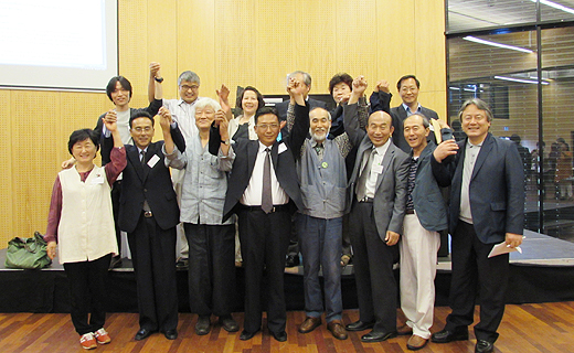 | ▲스위스 보세이에 참가한 남북교회 관계자들이 구호를 외치며 기념촬영에 임하고 있다. ⓒ사진제공=NCCK |