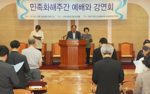한국기독교교회협의회(NCCK)는 24일(화) 오후 서울 종로구 연지동 기독교회관에서 “민족화해주간 예배와 강연회”를 열었다. 이날 예배 설교는 방현섭 목사(함께나누는세상 사무국장)가 맡았으며, 강연은 서울대 박태균 교수가 진행했다.