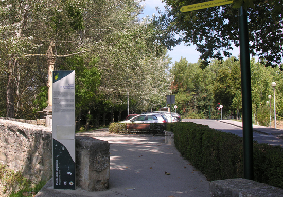 막달레나 다리 건너 노란 화살표가 안내하는 까미노는 오른쪽으로 표시되어 있고, 우리가 가려는 알베르게-헤수스 이 마리아는 왼쪽으로 이정표가 있다. 잠간 망설인 후에 알베르게 방향의 이정표를 따르기로 하고 공원의 왼쪽 수풀로 들어섰다. 그런데 그 때부터 어떤 표지도 없다. 길에 대한 확신이 점점 사라진다. 몸은 지쳐 있고, 되돌아가야 할 생각도 나지 않는다. 간혹 지나가는 행인에게 물어보아도 말이 통하지 않고, 모른다는 말만 할 뿐이다. 순간 당혹감에 공황이다. 이제는 무조건 물어봐야 한다. 일단 공원을 빠져 나가야 했다.