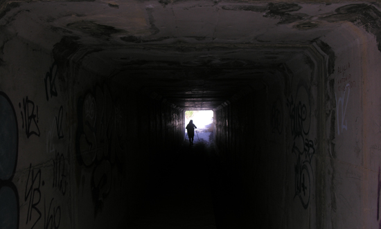 | ▲팜플로나의 관문인 트리니다드 데 아레Trinidad de Arre에 들어가기 전 만나는 터널 속으로 순례자가 걸어가고 있다. |