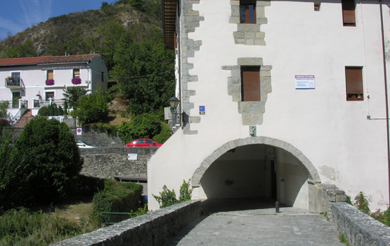 | ▲트리니다드 데 아레 알베르게가 울사마 강을 건너는 다리 끝과 인접해 있다. 알베르게 벽에 까미노를 안내하는 노란화살표가 보인다. |