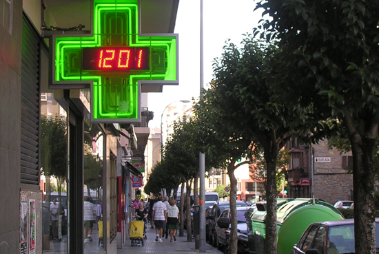 팜플로나와 인접해지면서 비야바Villava와 부를라다Burlada를 지날 때는 이제 완전히 대도시에 들어 선 느낌이다. 도시의 약국 입구에 있는 네온 녹십자가 또렷이 발광한다. 초록색 네온 십자가 가운데 빨간 글씨가 현재시각 12시 1분을 안내한다.