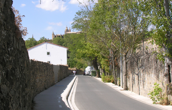 조금 전까지 영혼없는 사람들처럼, 감각없이 걷던 우리 일행도 활기를 띤다. 한걸음 나갈 때 마다 시시각각 변화하는 도시 풍경이 근육에 몰핀이라도 주사한 것처럼 순간의 고통과 피로를 깜박 잊게 해 주었다. 그러나 진통제의 효과라는 것은 그리 오래 가지 않을 뿐 아니라, 더 강한 자극을 요구하는 게다. 얼마 못가서 우리는 다시 급속히 지쳐버렸다. 더 이상 걷기 힘들어 멈추어 선 채, 길 가에 있는 도시 안내도를 괜히 들여다보며 지하철 노선도 살펴보듯 현재위치와 목적지를 한참 찾아본다. 부를라다와 팜플로나를 연결하는 한적한 아스팔트 도로(도시 안내도상 한 뼘도 안 되는 거리)를 따라, 이어진 돌담 그늘이 그나마 위로가 된다. 돌담길 끝에 수풀이 보이고, 드디어 그 위로 연한 살구색 산타 마리아 교회Catedral de Santa Maria가 반갑고 신비한 자태를 드러내기 시작했다.(사진제공= 이대희 목사)