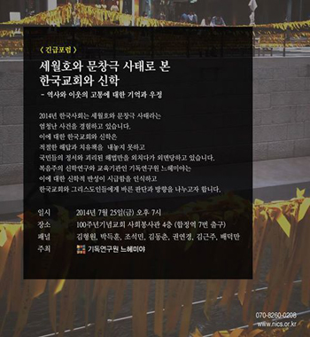 최근 세월호 참사와 관련된 목회자들의 부적절한 발언과 문창극 전 총리 후보자의 종교편향 발언이 논란을 불러일으킨 가운데 기독연구원 느헤미야는 오는 25일(금) 오후 서울 합정동 100주년기념교회에서 <긴급포럼—세월호와 문창극 사태로 본 한국교회와 신학>을 개최한다.