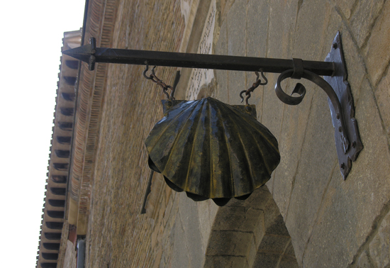 | ▲팜플로나의 순례자 숙소 ‘헤수스 이 마리아’를 상징하는 조가비 문양 표지판 |