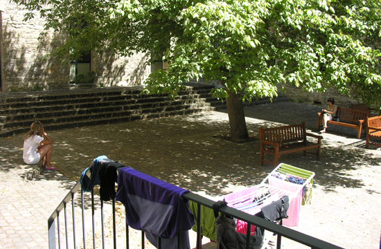 | ▲빨래를 널어놓은 햇빛 가득한 팜플로나 순례자 숙소의 안마당 |