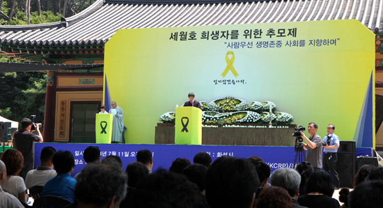 한신대 채수일 총장은 11일(금) 경기도 화성 용주사에서 거행된 ‘세월호 희생자들을 위한 추모제’(이하 추모제)에 참석해 희생자들의 넋을 기리고 유가족들을 위로했다.