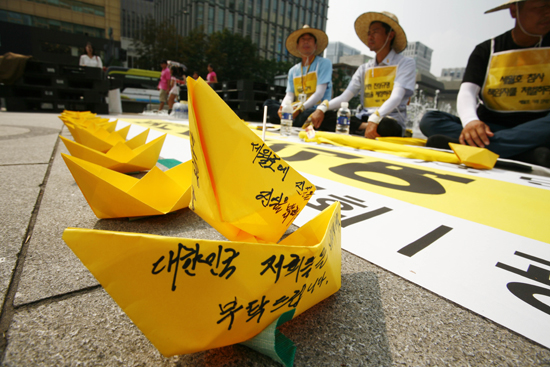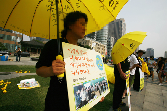 14일 세월호 참사 희생자 유가족들이 특별법 제정을 요구하며 광화문에서 단식 농성에 들어갔다. 이들은 시민들에게 특별법 마련을 호소했다.