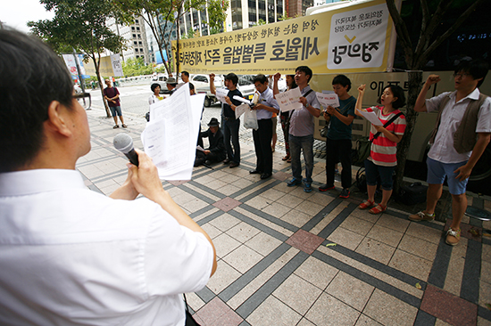 | ▲24일 향린교회 교인들이 서울 종로구 서린동 이스라엘 대사관 앞에 집결해 <이스라엘의 팔레스타인 양민학살 규탄 기도회>를 가졌다. ⓒ사진=지유석 기자 |