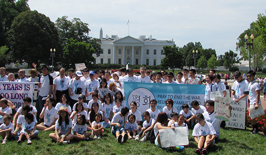 | ▲워싱턴 평화행진 참가자들이 행진 후 백악관 앞에서 기념촬영을 하고 있다. ⓒ사진제공=NCCK |