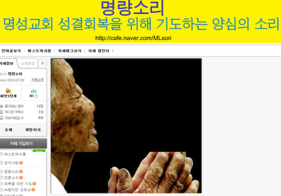 | ▲명성교회 개혁을 위한 카페가 개설돼 주목을 모으고 있다. ⓒ네이버 카페 ‘명량소리’ 캡쳐 |