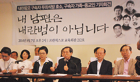 국정원 내란음모 정치공작 공안탄압 규탄대책위(상임대표 이창복, 함세웅 등)는 8월8일(금) 오후 정동 프란시스코 교육회관 2층에서 기자회견을 열었다. 이들은 공안정국을 획책하는 정부와 그 분위기를 조장하는 보수언론 및 보수성향 종교단체들을 성토했다.