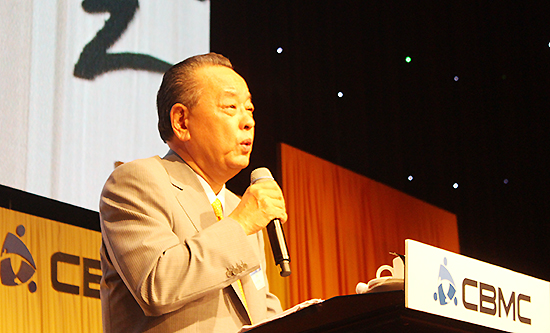 | ▲CBMC 제41차 한국대회 첫째날 저녁 강사로 연단에 선 이중명 회장(에머슨퍼시픽그룹)이 열정적으로 강연하고 있다. ⓒ사진=공동취재단 |