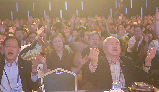 | ▲CBMC 제41차 한국대회에서 CBMC 회원들이 뜨겁게 기도하고 있다. ⓒ사진=공동취재단 |