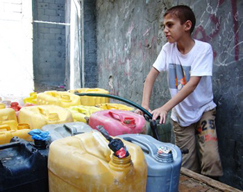 | ▲팔레스타인 가자지구의 한 아동이 공동수돗가에서 물통에 물을 채우고 있다. ⓒ사진제공=WCC |