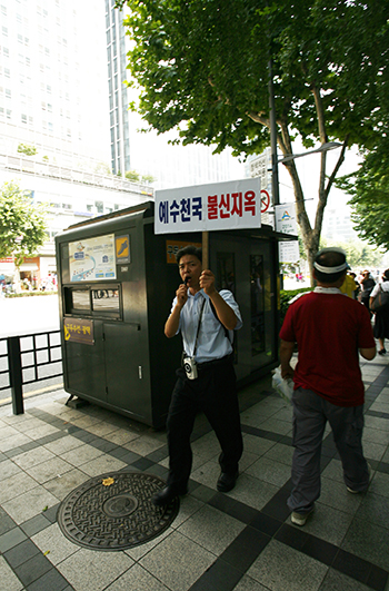 이들은 집회를 마친 뒤 ‘적그리스도 로마교황 반대’, ‘예수천국 불신지옥’ 등의 문구가 적힌 현수막과 피켓을 들고 광화문 사거리로 행진했다. 이들은 시복미사가 끝난 이후에도 종로 일대를 돌며 미사 참가자들을 자극했다.