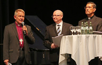 | ▲독일 베를린에서 개최된 <선교와 (타문화) 존중 대회>에서 연사들이 발표하고 있다. 왼쪽으로부터 앤더스 베여리드 명예주교, 제프 터니클리프 목사, 미구엘 귀조 수사. ⓒ사진제공=WCC |