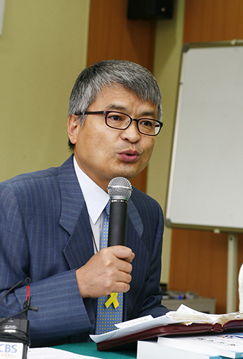 | ▲기장 총회 선교사업국장 이길수 목사가 총회 주제 및 주요 헌의안 등에 대해 설명하고 있다. ⓒ사진=지유석 기자 |