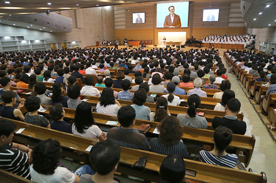 | ▲강북제일교회 황형택 목사와 교인들이 예배를 드리고 있다. ⓒ사진제공=강북제일교회 |