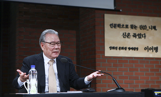 | ▲이어령 박사가 18일(목) 양화진 문화원 목요강좌에서 ‘인문학으로 찾는 신(1): 니체, 신은 죽었다’를 주제로 강연했다. ⓒ사진제공= 양화진 문화원 |