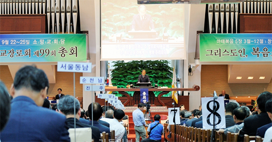 | ▲예장통합 제99회 정기총회 셋째 날 오전 사무처리에서는 ‘교회세습방지법’의 구체적 조항이 담긴 헌법개정안이 통과됐다. ⓒ사진제공=공동취재단 |