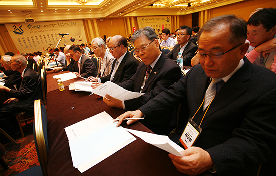| ▲한국기독교장로회 총회의 제99회 정기총회가 전북 부안에서 열리고 있는 가운데 회무처리가 진행되어 총대들이 주요 안건을 검토하고 있다. ⓒ사진=지유석 기자 |