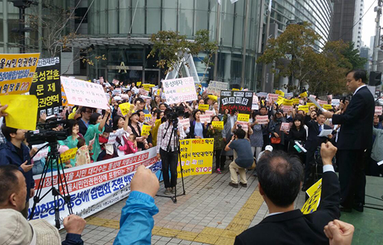 | ▲2일 동아일보사 앞에서 보수적 성향의 시민단체들이 서울시민인권헌장의 동성애 합법화 조항에 반대하며 시위를 벌이고 있다. ⓒ사진제공=공동취재단 |