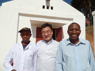 | ▲김창주 선교사가 마다가스카르 현지인들과 함께 기념사진 촬영을 하고 있다. |