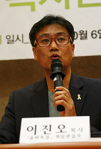 | ▲『숨바꼭질』 책임편집장 이진오 목사가 인사말을 전하고 있다. ⓒ사진=지유석 기자 |
