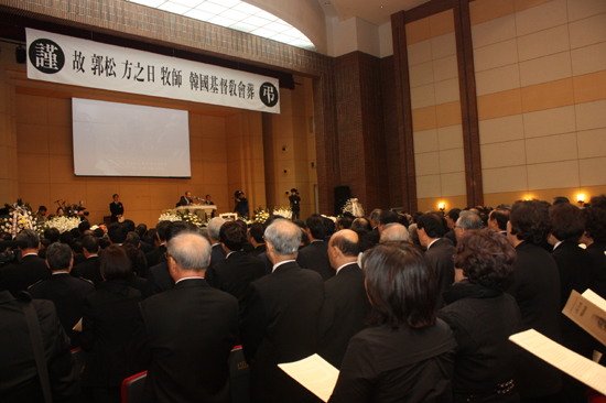 고 곽송(郭松) 방지일 목사 한국기독교회장이 14일(화) 오전 9시 서울 종로 한국교회백주년기념관 대강당에서 열렸다. 이날 장례식에는 교파를 초월하여 교계 지도자들이 대거 참여해 눈길을 끌었다.