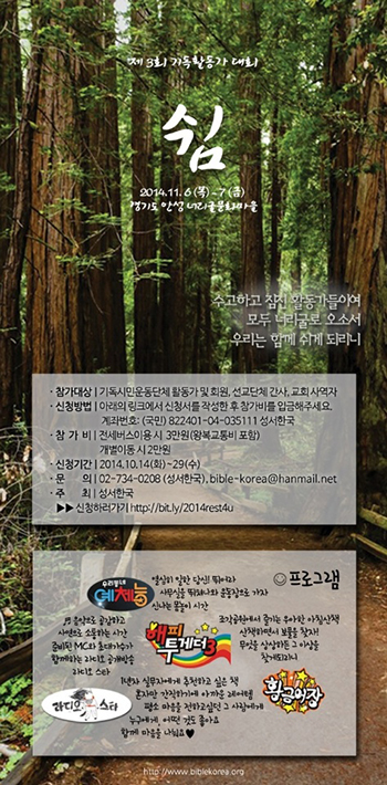 • 문 의: 성서한국 사무국 (전화: 02-734-0208, 이메일: bible-korea@hanmail.net)