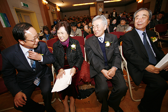 | ▲11월6일(목) 오후 서울 종로구 연지동 기독교회관에서 열린 『장공 김재준의 삶과 신학』 출판기념회 및 기념강연회에 참석한 황용대 기장 총회장(맨 왼쪽)이 장공 김재준 목사의 유족인 이정희, 김관용 장로와 인사를 나누고 있다. 사진 맨 오른쪽은 사단법인 <장공 김재준 목사 기념 사업회> 김경재 이사장. ⓒ사진=지유석 기자 |