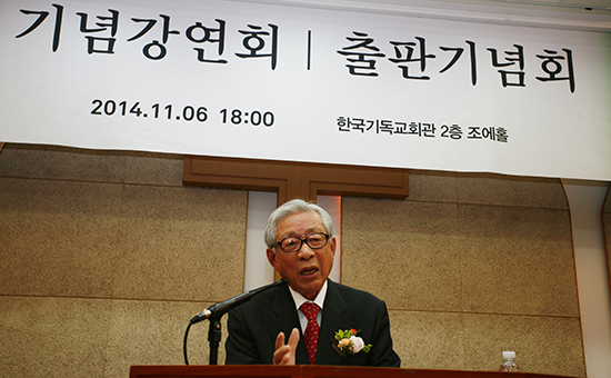 | ▲6일 오후 『장공 김재준의 삶과 신학』 출판기념회 및 기념강연회에서 한완상 전 부총리가 강연하고 있다. ⓒ사진=지유석 기자 |