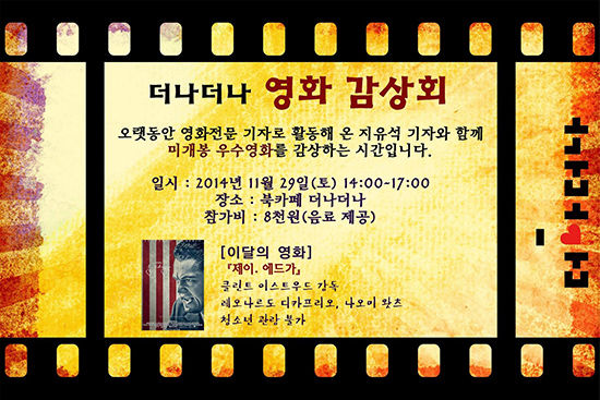 서울 마포구 노고산동에 자리한 공익 카페 더나더나는 11월 다양한 문화 프로그램 및 세미나로 인지도를 높일 예정이다. 먼저 22일(토) 오후 '재즈의 탄생과 변화'를 주제로 재즈 음악 감상회를 열었다. 이어 오는 28일(금) 오후 8시엔 최성호-전제곤 기타 베이스 듀오 공연이 열린다. 다음 날인 29일(토) 오후 2시와 7시에 각각 '미개봉 우수영화 상영회 -