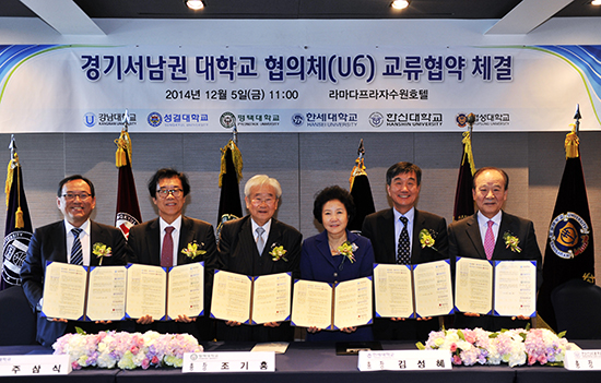 경기서남권 6개 대학교(강남대학교, 성결대학교, 평택대학교, 한세대학교, 한신대학교, 협성대학교)는 12월 5일(금) 수원 라마다프라자 수원호텔에서 대학운영에 관한 포괄적 교류협력 추진을 위한 협약을 체결하고 <경기서남권 대학교 협의체>(U6)를 발족했다.