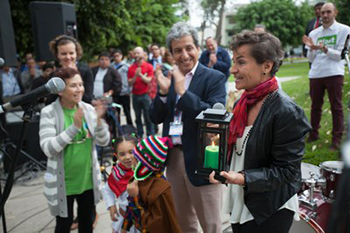 | ▲유엔기후변화기본협약(UNFCCC) 제20차 당사국회의 첫날인 12월1일 크리스티아나 피규에레스 UNFCCC 의장과 마누엘 풀가르-비달 페루 환경장관이 <기후를 위한 금식> 행사에서 금식의 종결을 알리는 촛불을 켰다. ⓒ사진제공= 루터교세계연맹(LWF) / Sean Hawkey |