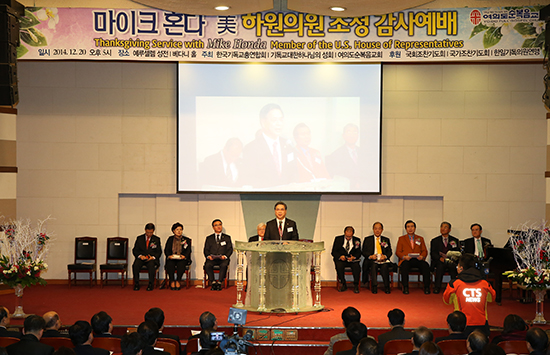 여의도순복음교회(담임 이영훈 목사)는 12월20일(토) 오후 예루살렘성전에서 <마이크 혼다 하원의원 초청 감사예배>를 드렸다. 미국 하원의원인 마이크 혼다는 지난 2007년 미국 하원의 ‘일본군 위안부 결의안’ 통과의 주역이다.