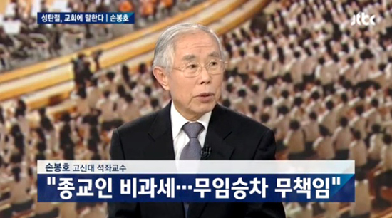 이와 관련, 손봉호 고신대 석좌교수는 성탄절인 25일(목) 오후 에 출연해 “소득이 있으면 반드시 세금을 내야한다”고 주장했다. 손 교수는 “물론 종교인들 가운데 약 70%는 세금을 안 내도 되는 정도의 소득을 누리고 있다. 그리고 또 약 30% 가운데도 이미 세금을 내는 사람들이 있다”라면서 “이 점(종교인 과세)이 문제가 되는 사람들은 그렇게 많지 않다. 그 사람들만 양보하면 얼마든지 해결될 수 있는 문제다. 내년까지 기다릴 게 아니라 모든 종교인들이 자진해서 소득세를 내야 한다”고 지적했다.