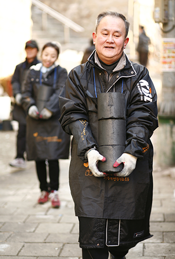지승룡 대표는 나눔운동을 통해 올해로 꼭 7년째 연탄 배달 봉사활동을 벌여 왔다. 지 대표는 “올해엔 연가 가족들과 함께하고 싶어 봉사활동을 제안했다”고 취지를 밝혔다. 참가자들은 시종 밝은 미소로 봉사활동에 임했다. 하루 동안의 봉사활동을 위해 대전, 부산 등 지방에서 달려온 참가자도 있었다. 올해 고3 수험생이 되는 딸 김예랑 양과 함께 대전에서 올라온 강미정 씨는 “딸이 먼저 가자고 졸라서 왔는데 잘 왔다는 느낌이 든다. 딸이 자랑스럽다”는 소감을 전했다.