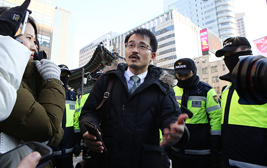 정 씨는 1월27일(화) 오후 세월호 농성장이 있는 광화문을 찾았다가 경찰의 제지에 막혔다. 서북청년단은 지난 12일(월) 자체 홈페이지를 통해 “(세월호) 유가족들이 광화문광장을 자진철거하지 않으면 오는 1월31일 자정을 기해 강제로 철거하겠다”고 밝혔다. 정 씨는 이 같은 입장을 전달하고자 광화문광장을 찾았던 것이다.