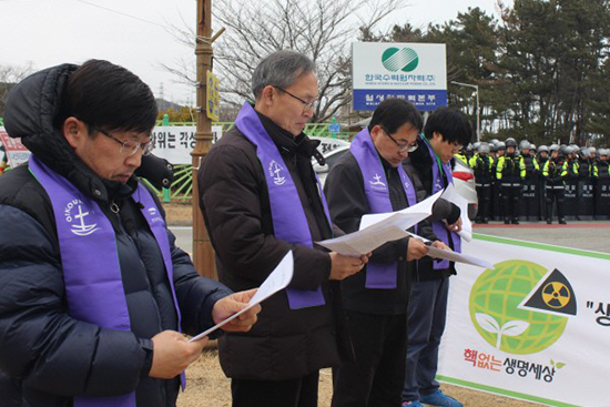 | ▲<핵 없는 세상을 위한 한국 그리스도인 연대>(이하 핵그련)는 1월29일(목) 오후2시 “수명 다한 월성1호기 폐쇄를 위한 기도회”를 개최하기 위해 월성 원자력 발전소를 찾았다. ⓒ사진제공=NCCK |