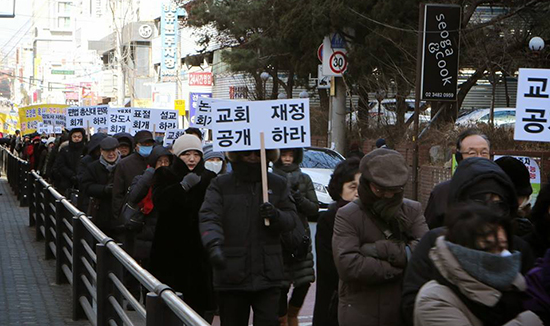 사랑의교회가 오정현 담임목사의 논문표절과 교회건축, 공금유용 혐의로 내홍을 겪고 있는 가운데 이 교회 갱신그룹 성도 420여 명은 2월8일(일) 옛 강남 예배당에서 서초 예배당까지 가두행진을 벌였다.