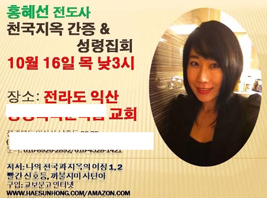 | ▲거짓 전도사 홍혜선의 간증 집회 홍보물 ⓒ출처=유튜브 |
