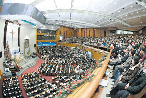 | ▲서울 명일동에 소재한 한 대형교회의 예배 전경. 상기 사진은 이 기사와 무관합니다. ⓒ베리타스 DB |